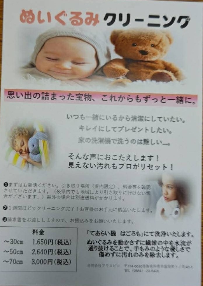 愛着をもって可愛がられてきたぬいぐるみさん達を優しく、ふんわりと洗い上げます。