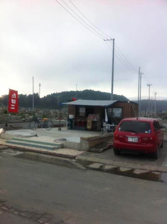 なにも無くなった更地の跡にぽつんと個人商店を開いている人がいました。